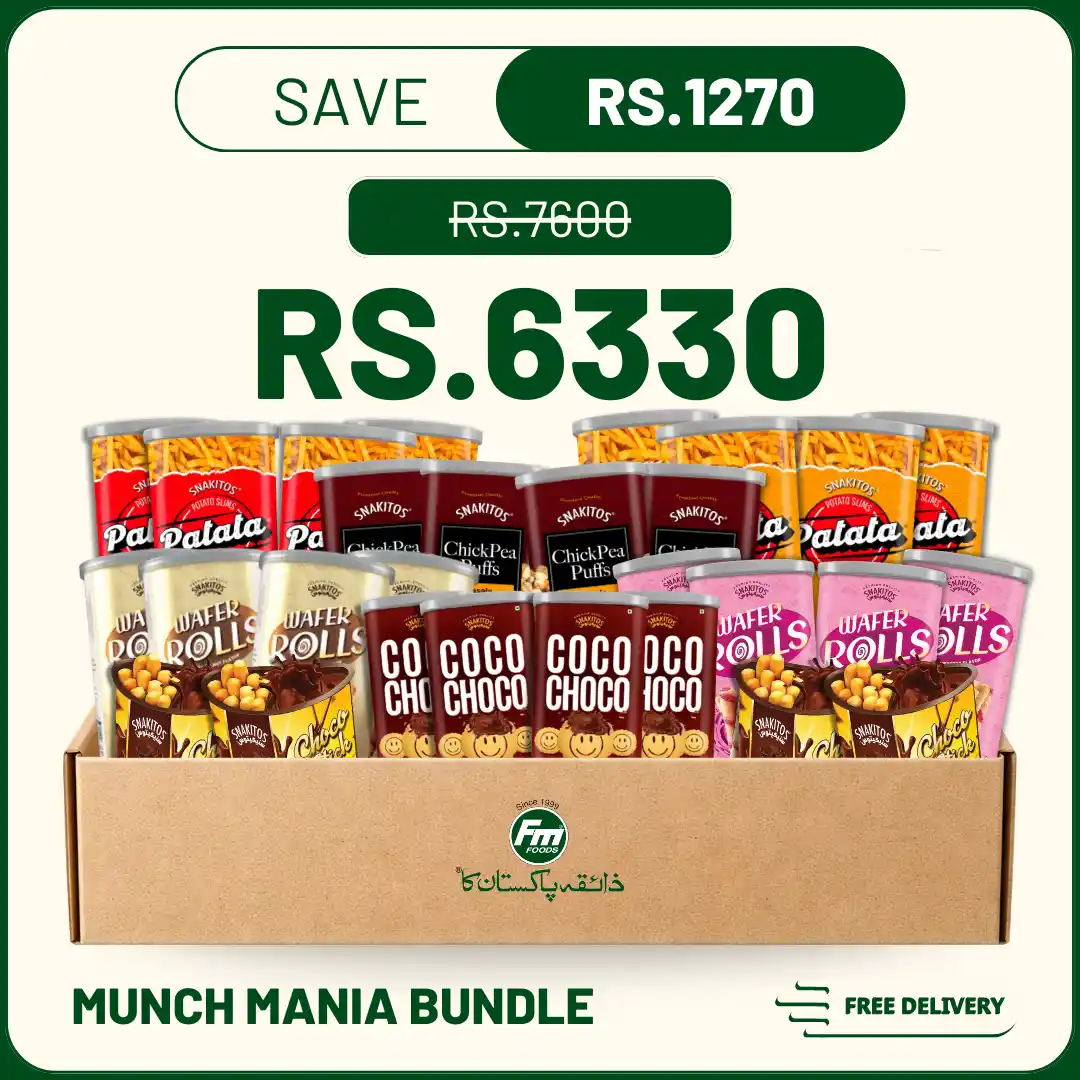 Visit fmfoods.pk and order your Munch Mania Bundle today! Embark on a culinary adventure with FM Foods and experience the joy of snacking!