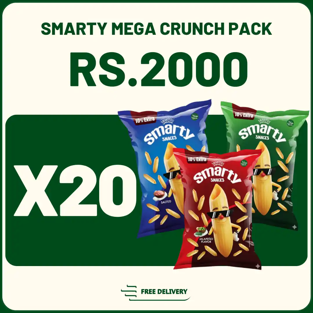 Enjoy bold flavors with the Smarty Mega Crunch Pack. This bundle brings together a generous mix of crispy snacks in three popular varieties. Each pack delivers great taste and a satisfying crunch.