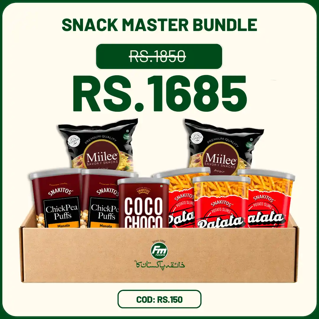 Elevate your snacking game with Snack Master Bundle – a perfect combination of Snakitos Stix in Lemon and Chili flavor, Patata Stix in Masala flavor, Nimco Mix, Chickpea Masala, and Desi Nacho. Made with high-quality ingredients, these snacks offer a burst of flavors and textures that will leave you wanting more. Perfect for parties, movie nights, or anytime hunger strikes.